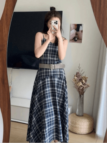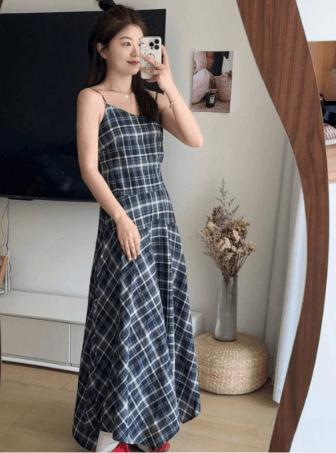 格紋細肩帶洋裝