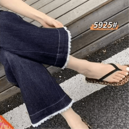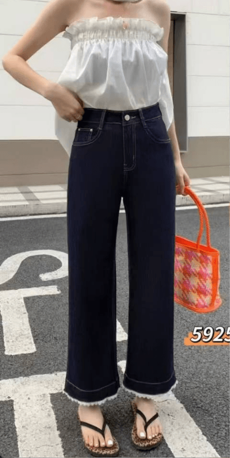 花邊褲管直筒牛仔褲(5個尺碼)-5925-#1010