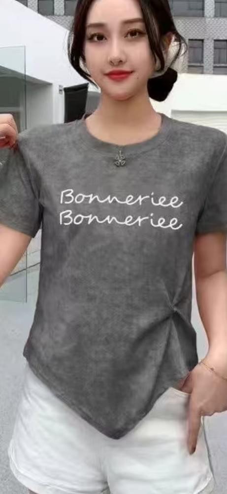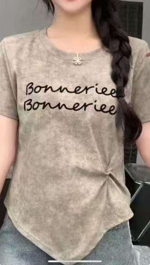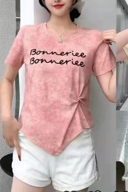 扎染植絨字母短T-9622-#1006